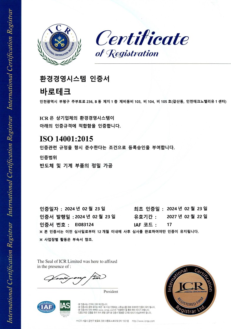 환경경영시스템 인증서 페이지 정보 작성자 관리자 댓글 0건 조회 68회 작성일 24-04-01 13:11 본문 환경경영시스템 인증서 목록 목록 이전글품질경영시스템 인증서 24.04.01 다음글안전보건경영시스템 인증서 24.04.01